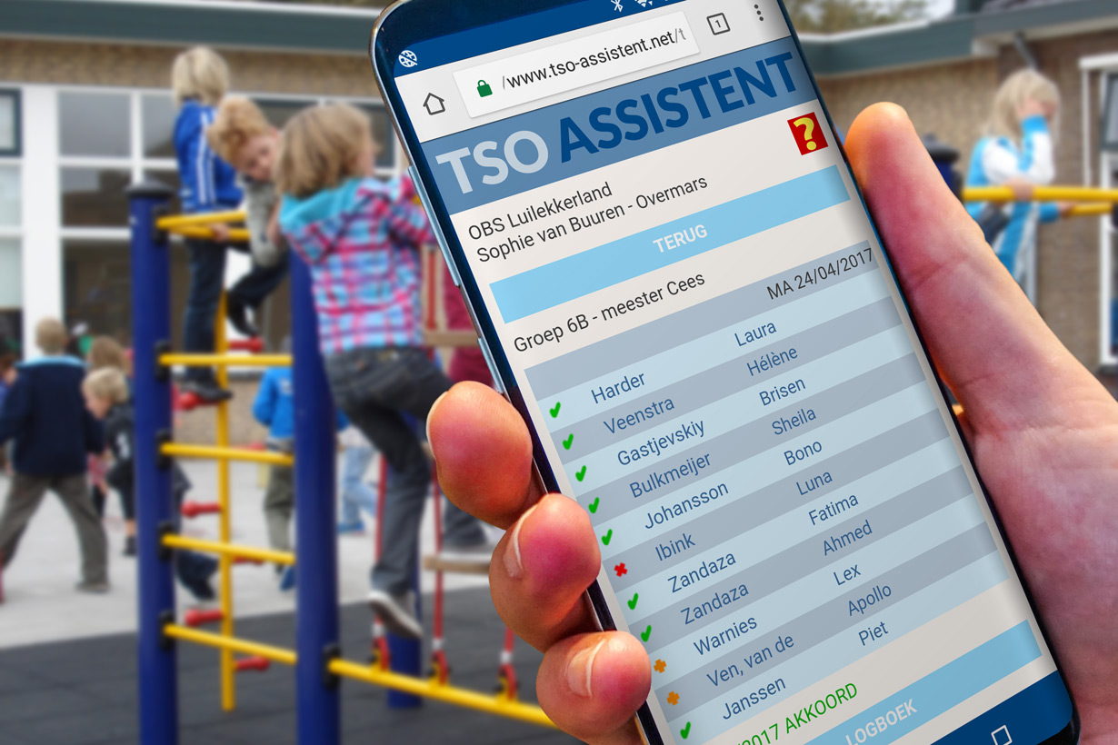 De medewerkers en de coördinator kunnen, terwijl ze met de smartphone over het schoolplein lopen, de presentie direct online vinken. Ze kunnen gelijk de presentie accorderen en eventueel aandachtspunten raadplegen of noodnummers direct bellen.
